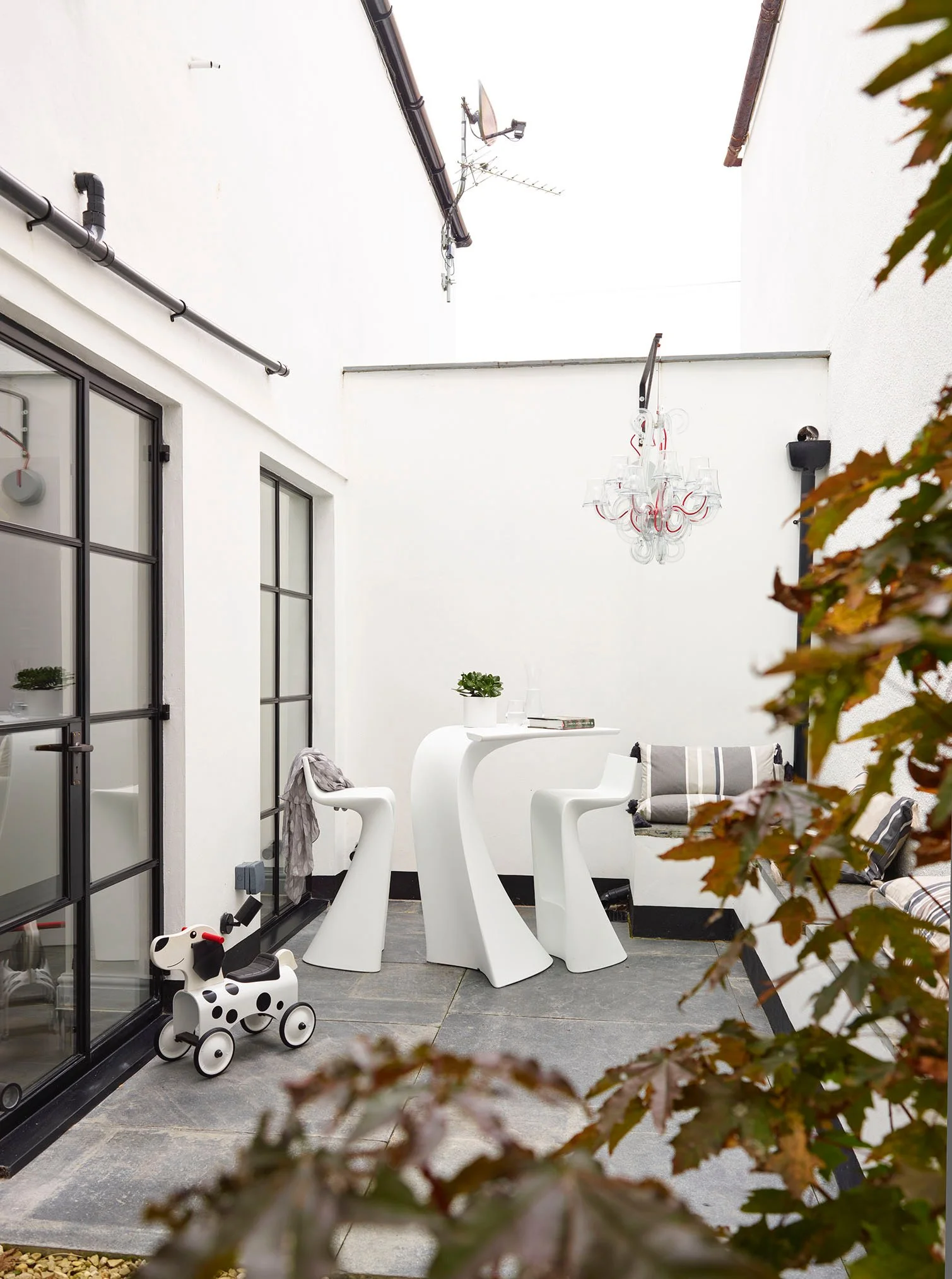 Approved to replace replica sash windows, the new Crittall doors invite natural light to stream through, opening the space to its courtyard and transforming how itβs experienced throughout the day.